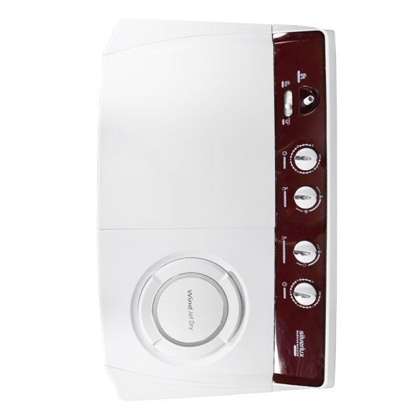 ماشین لباسشویی دوقلو دارای ولوم چرخشی تعبیهشده روی پنل دستگاه است که شامل تایمر شستشوی دقیقهای جهت شستشو و تایمر دقیقهای خشککن و ولوم تنظیم نوع عملکرد است.